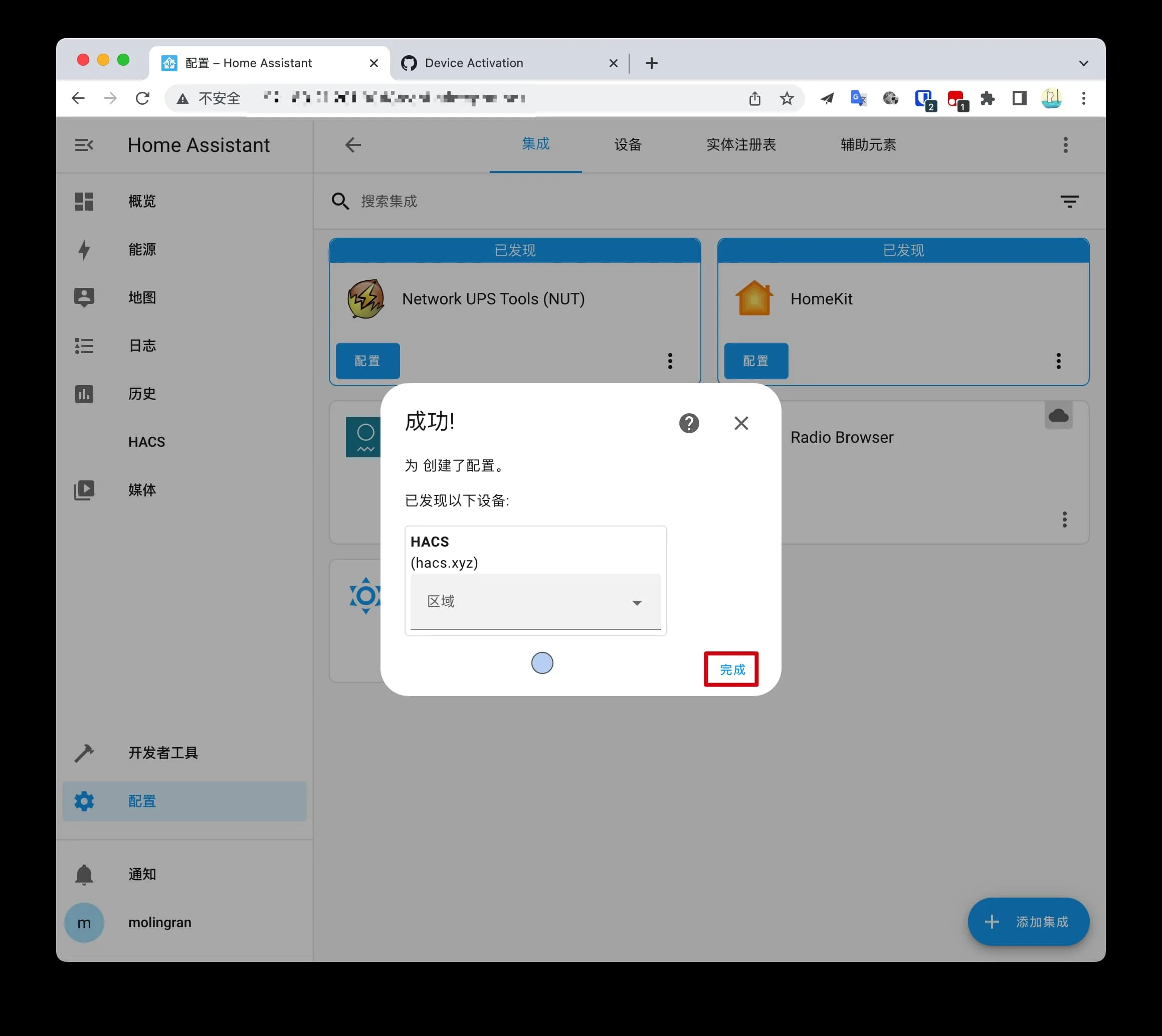 回到 HA,点击完成