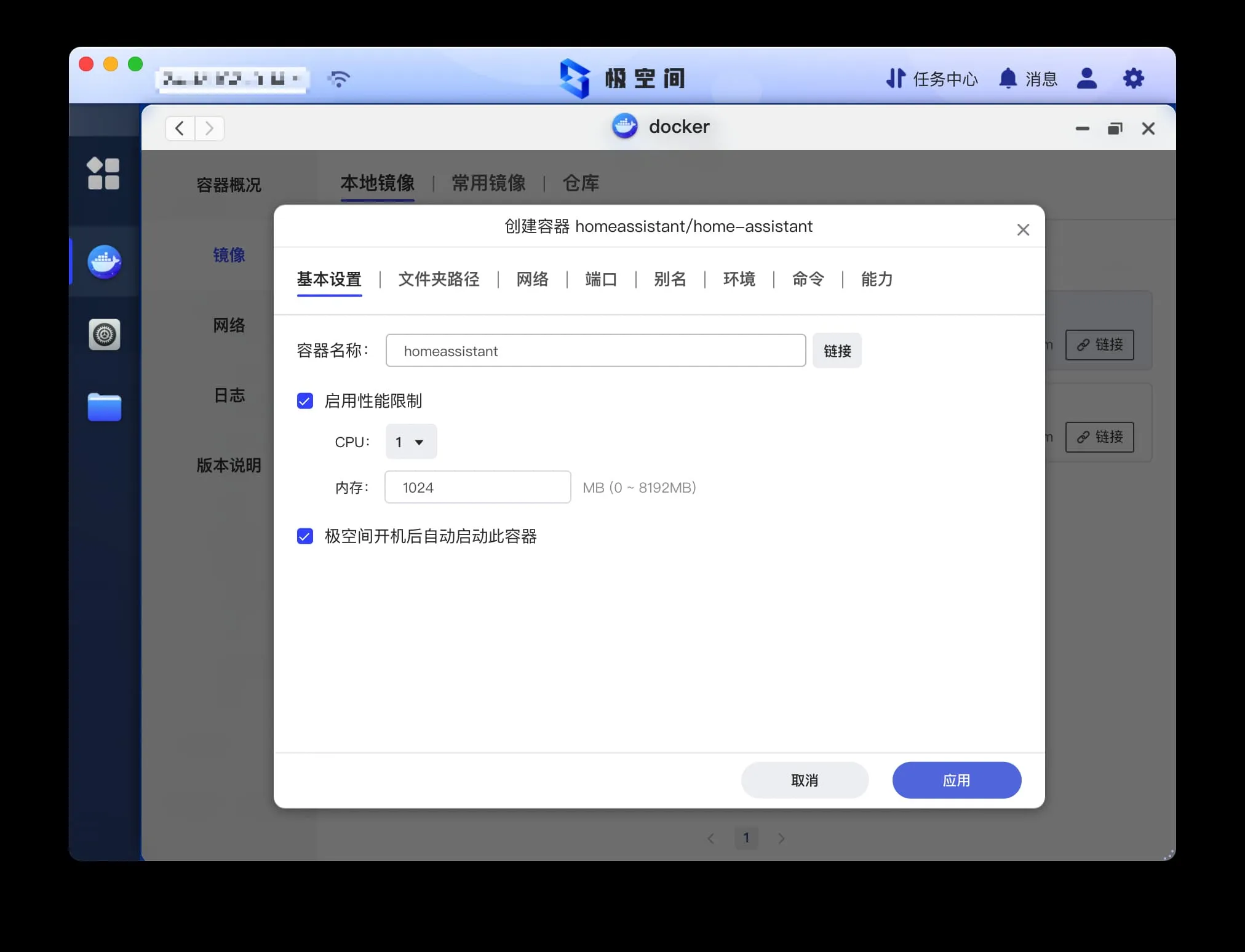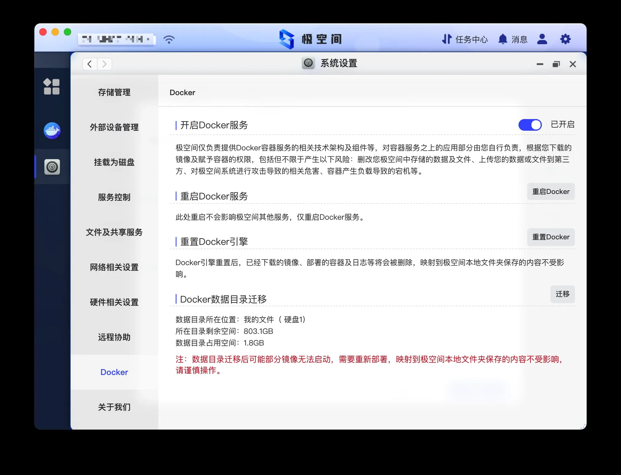 首先开启极空间中的 Docker 服务。