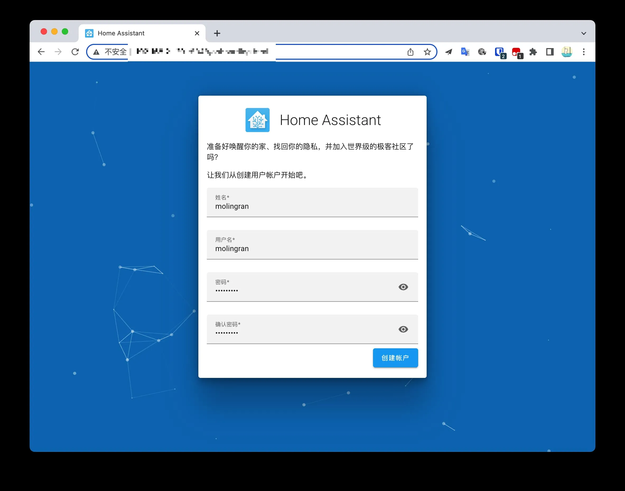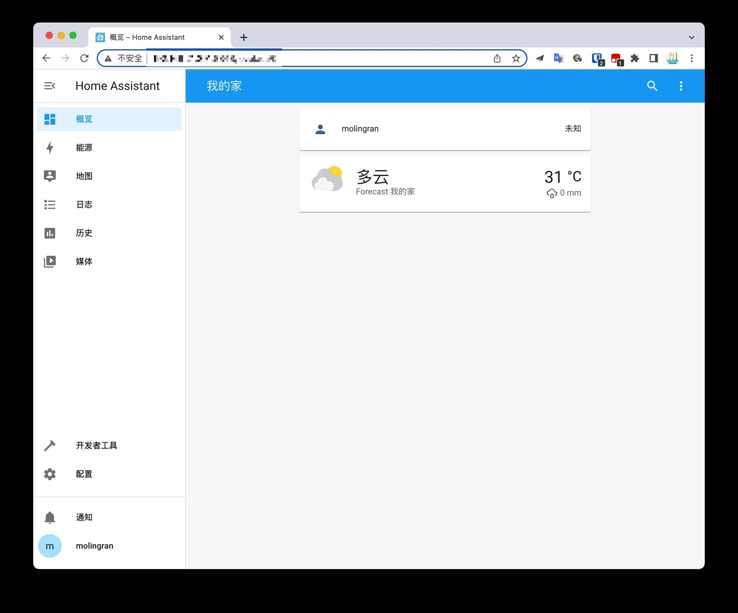 成功进入首页,Home Assistant 安装成功。