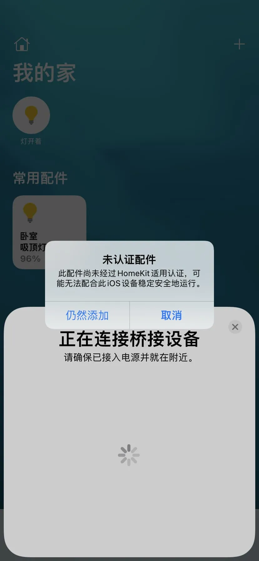 点击左下的通知,使用手机里的家庭中的“添加或扫描配件”,扫描这个二维码即可添加米家的设备了。