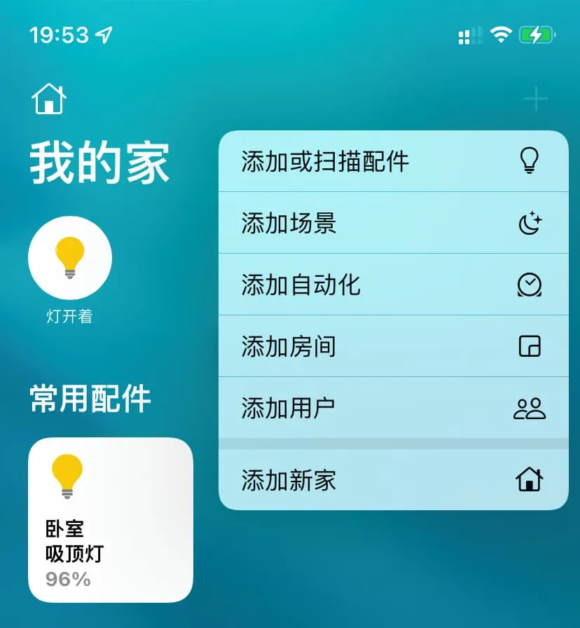 集成之后可以在控制中心中直接控制灯类与开关类电器,无需再打开米家 App。