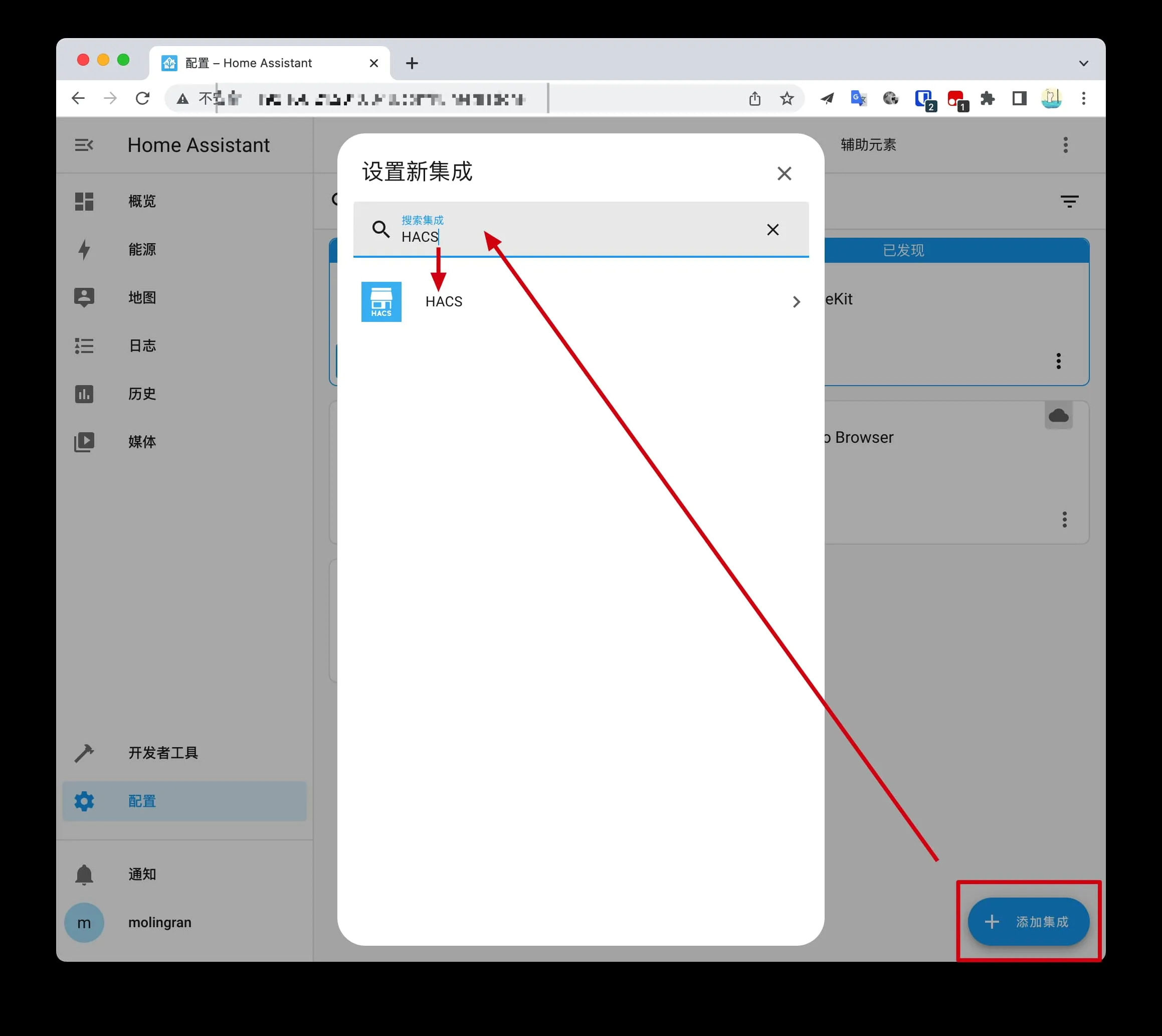 搜索并点击 HACS。