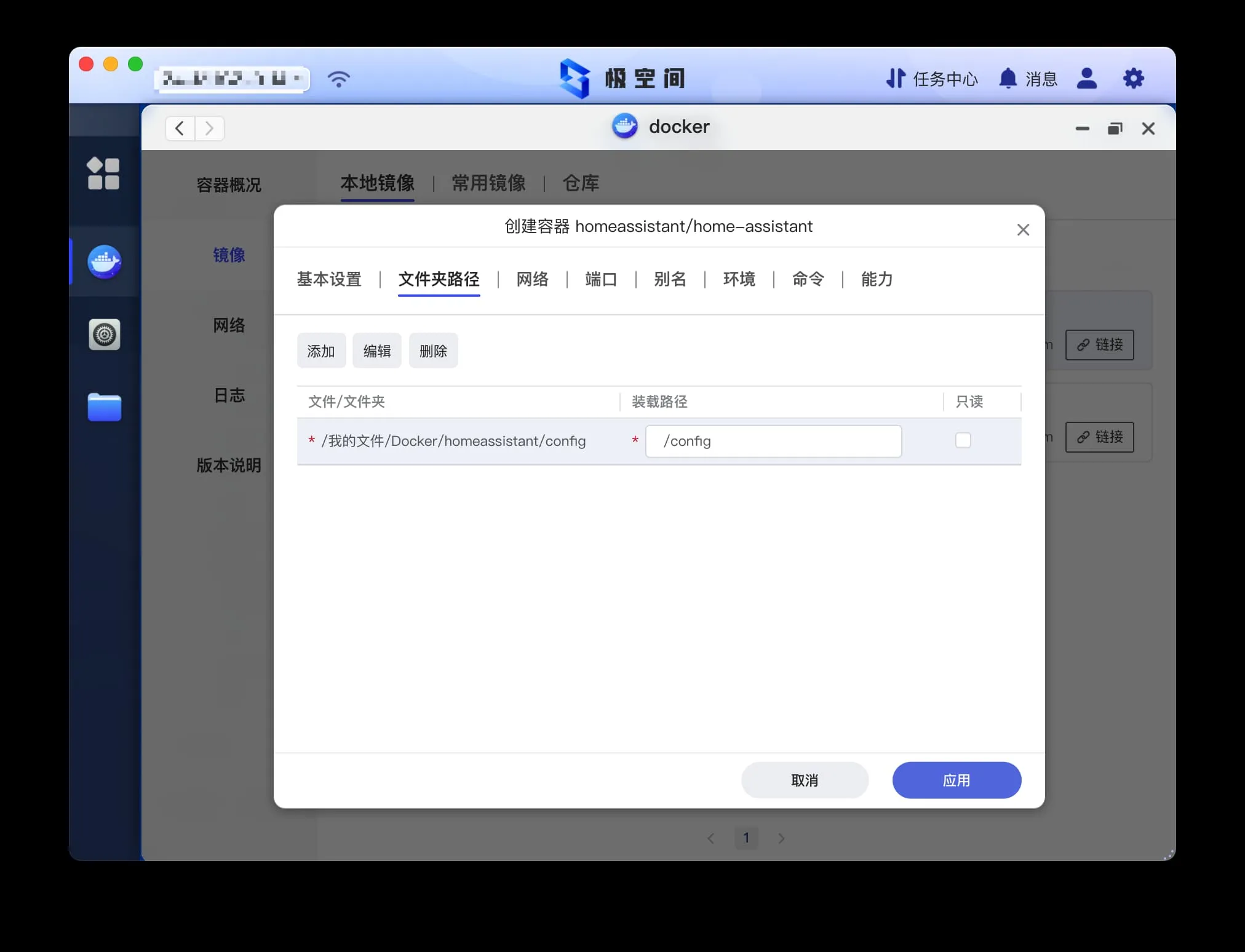 目录建议按照 Docker/{应用名称}/{映射目录} 的规则进行设置
