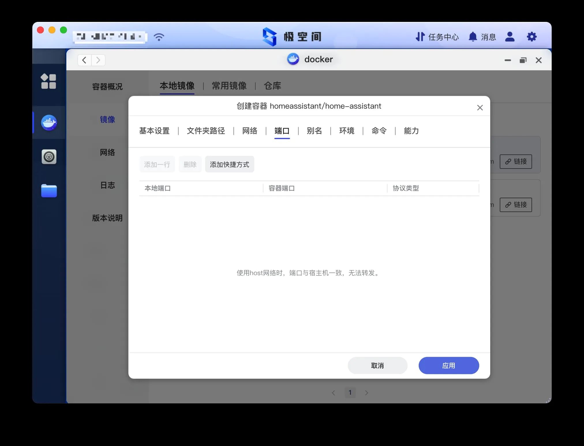 网络需要设置为 host 否则之后无法添加到 HomeKit